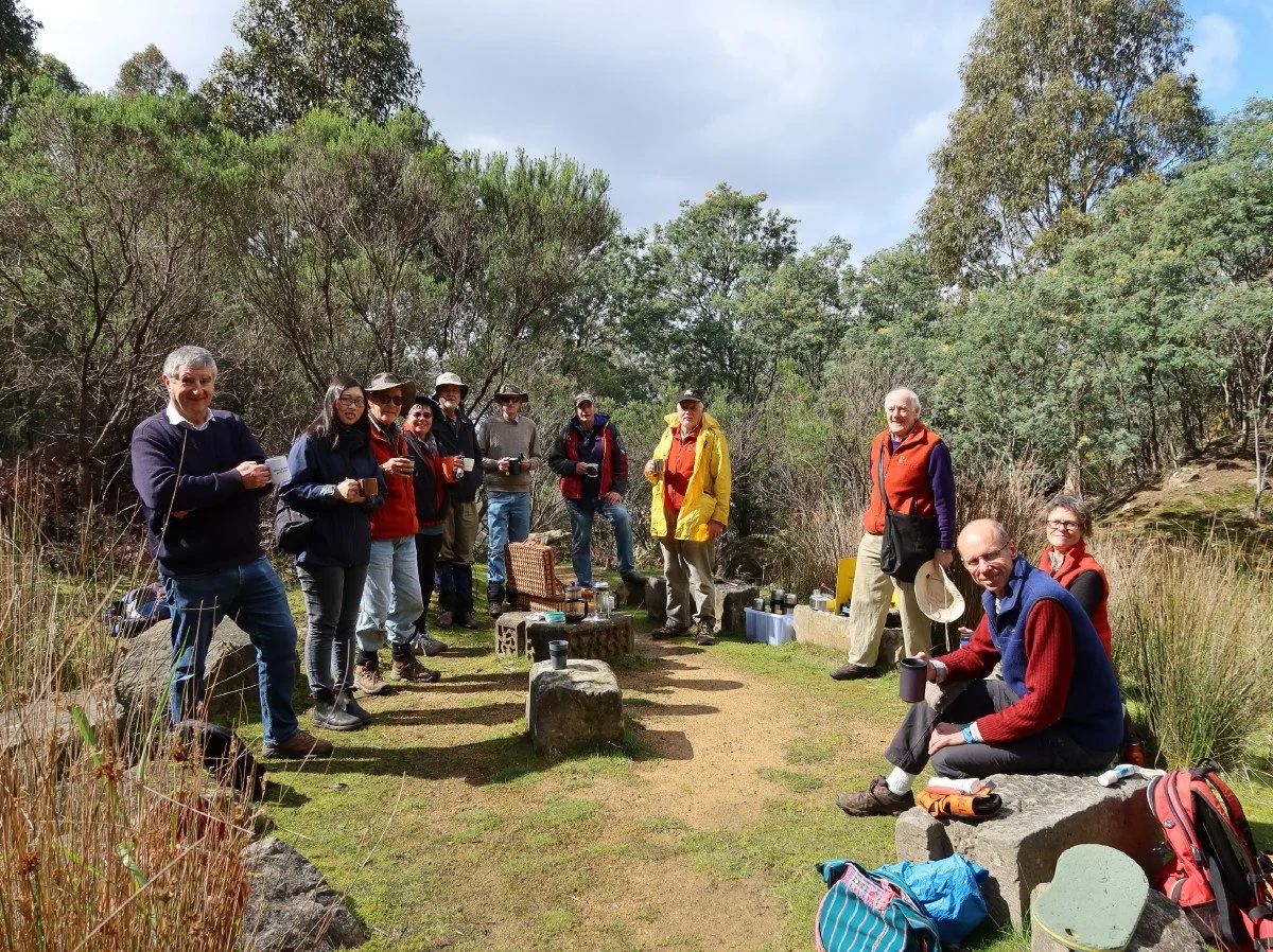 FoKL Members enjoying morning tea after roaming weeding up the Glover Track