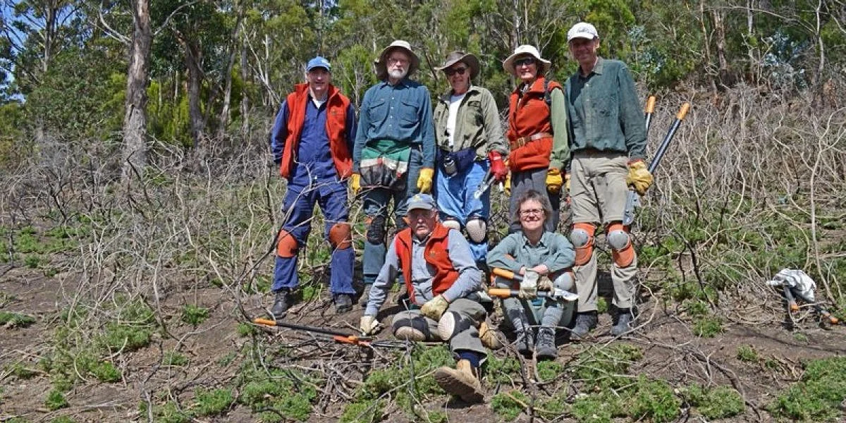 FoKL Members working in the sprayed gorse area above Weerona Trail prior to collecting dead material in windrows and later planting grasses