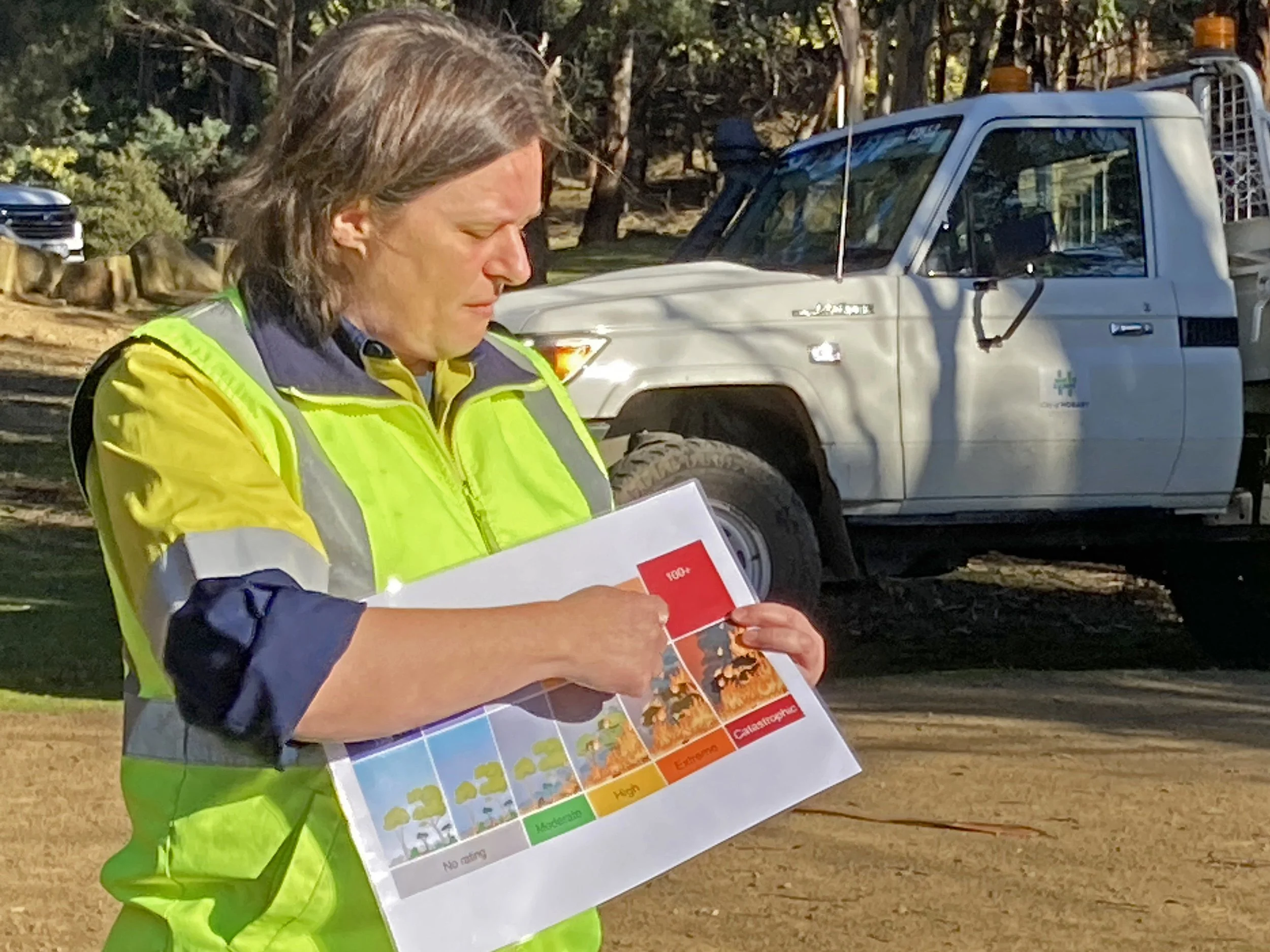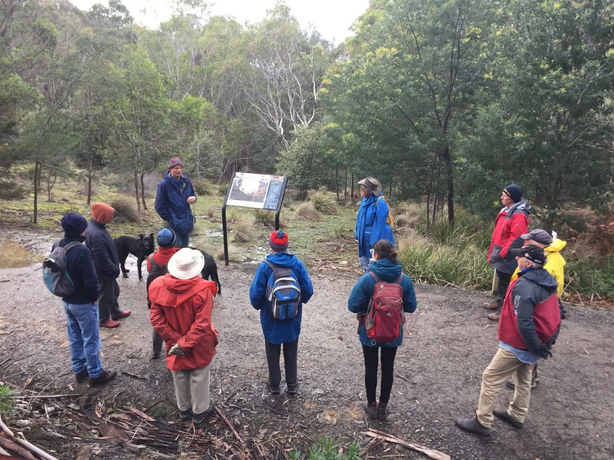 Mel, from Hobart City Council, discussing the threats of fire in the reserve - but also the benefits of planned, controlled burns on biodiversity as well as hazard reduction